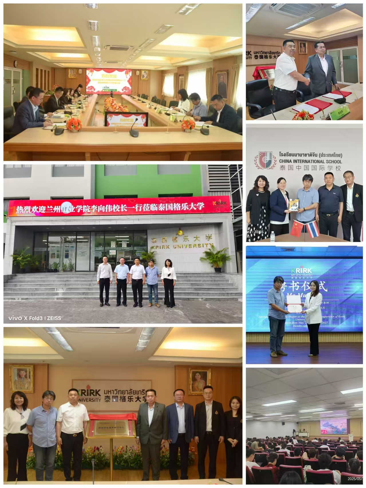 22日,代表团抵达泰国后,受到泰国格乐大学的热烈欢迎。该校理事长王长明、副校长扎兰、副校长罗勇及其团队热情接待了来访人员,并举行了座谈会。座谈会上,泰国格乐大学理事长王长明对兰州工业学院代表团的来访表示热烈欢迎,他希望能继续加强两校之间的深度合作。副校长李向伟代表兰州工业学院全体师生,对此次泰国格乐大学的邀请表示诚挚感谢,他希望携手泰国格乐大学,共同探索符合两校实际的新型合作模式,在师资交流、学生培养、课程共建、联合科研等方面构建长效合作机制,培育具有全球视野和跨文化理解力的国际化人才。会后,双方举行了兰州工业学院海外研习基地揭牌仪式,这一举措,为两校师生搭建了更为广阔的实践与交流平台。