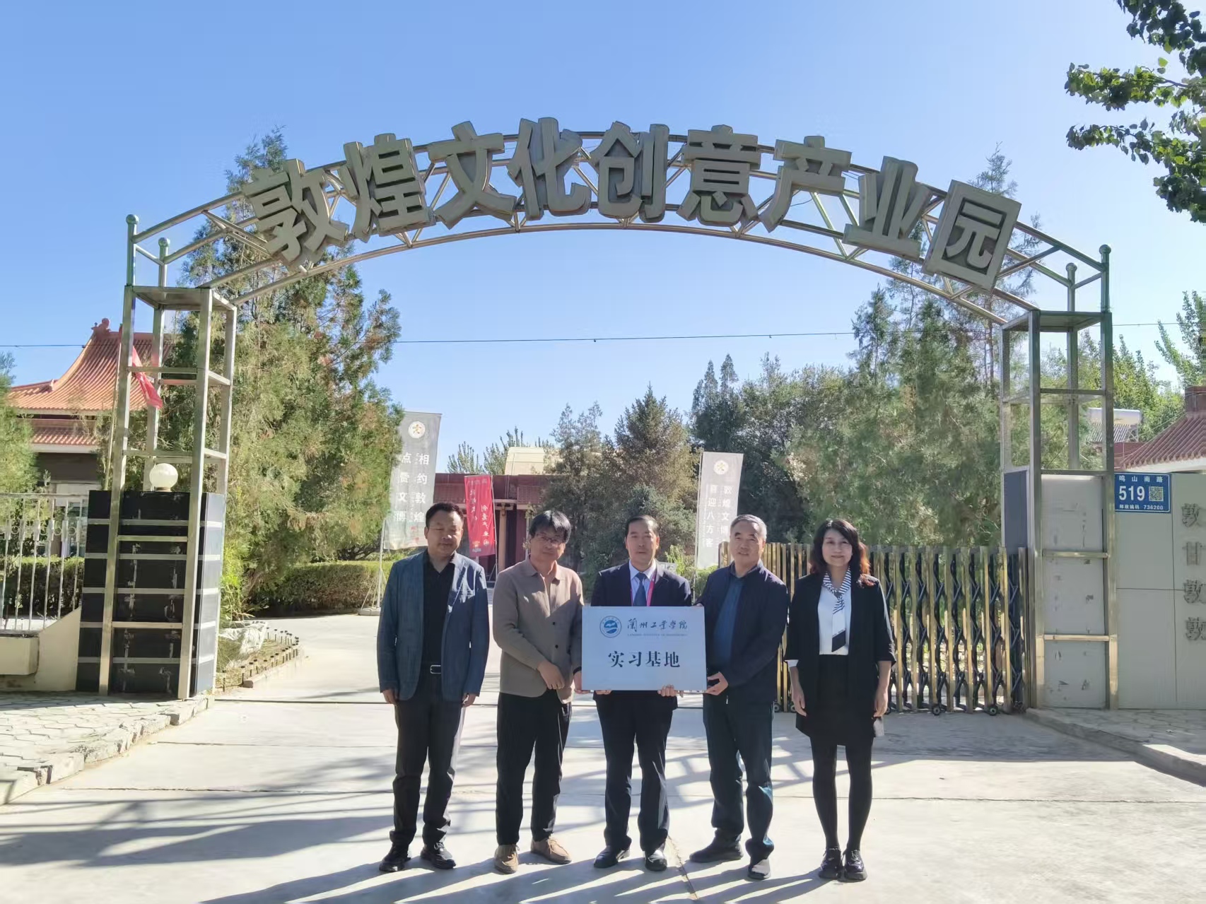 23日,马宏锋与敦煌文化创意产业股份有限公司董事长南振岐为“兰州工业学院实习基地”揭牌。实习基地的设立,标志着学校与敦煌文化创意产业园在人才培养、实践教学、就业创业等方面迈出了坚实的合作步伐,将有效助力学生更好地将理论知识与实践相结合,进一步提升专业素养与就业竞争力。